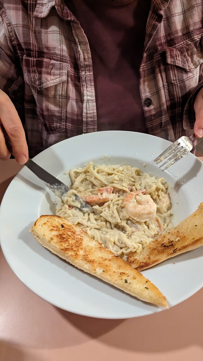 For a superb meal. My wife had the pasta fish and I had the chipotle chicken burger. Our meals came quickly, hot, and perfectly done. There is a wide selection on the menu. Well worth the stop...and friendly service besides.
